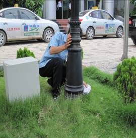 Làm sạch toàn bộ cột, chân cột đèn chiếu sáng
