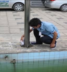 Quét toàn bộ xung quanh khu vực vào đầu giờ sáng tránh không gây bụi và trực rác nổi thường xuyên (tẩy kẹo cao su, nhặt mẩu thuốc lá nhặt rác trong các trậu cảnh bồn hoa)